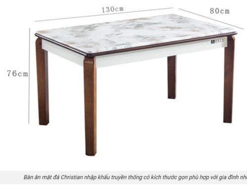 - Mẫu bàn ăn mặt đá Christian nhập khẩu này chân bàn 4 góc trụ , tạo sự chắc chắn cho kết cấu cũng như thẩm mỹ của sản phẩm .